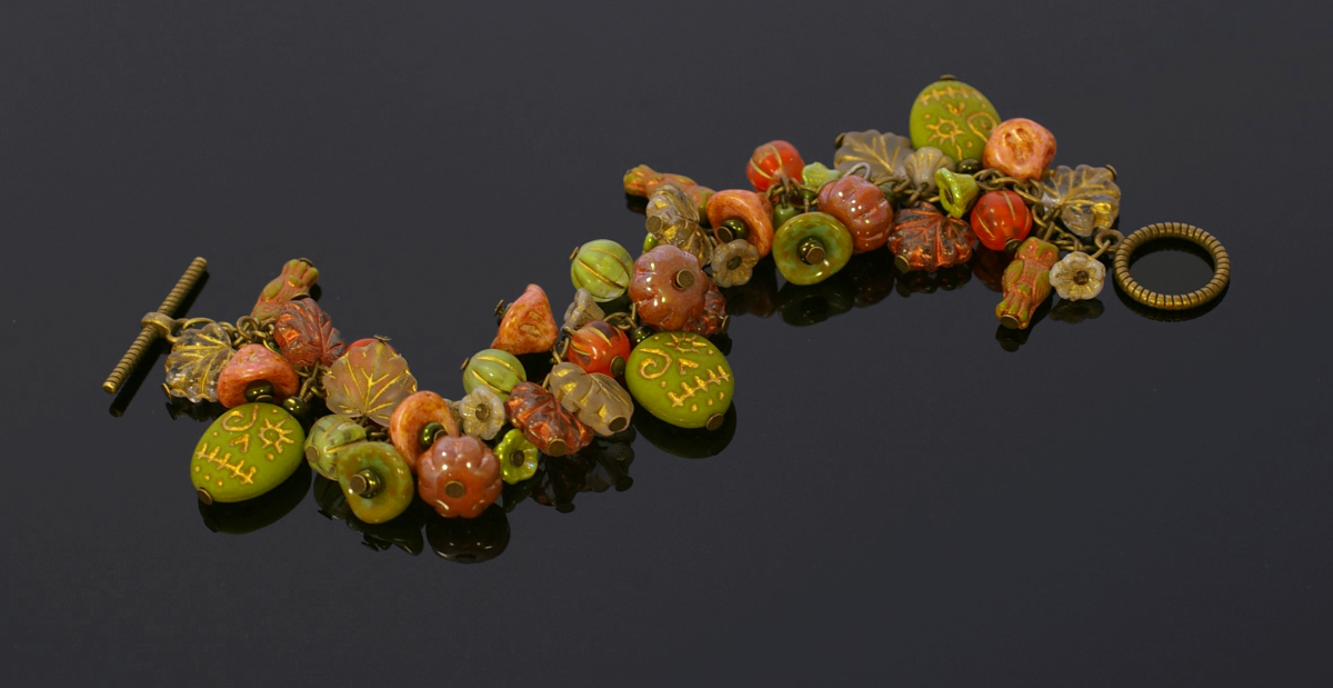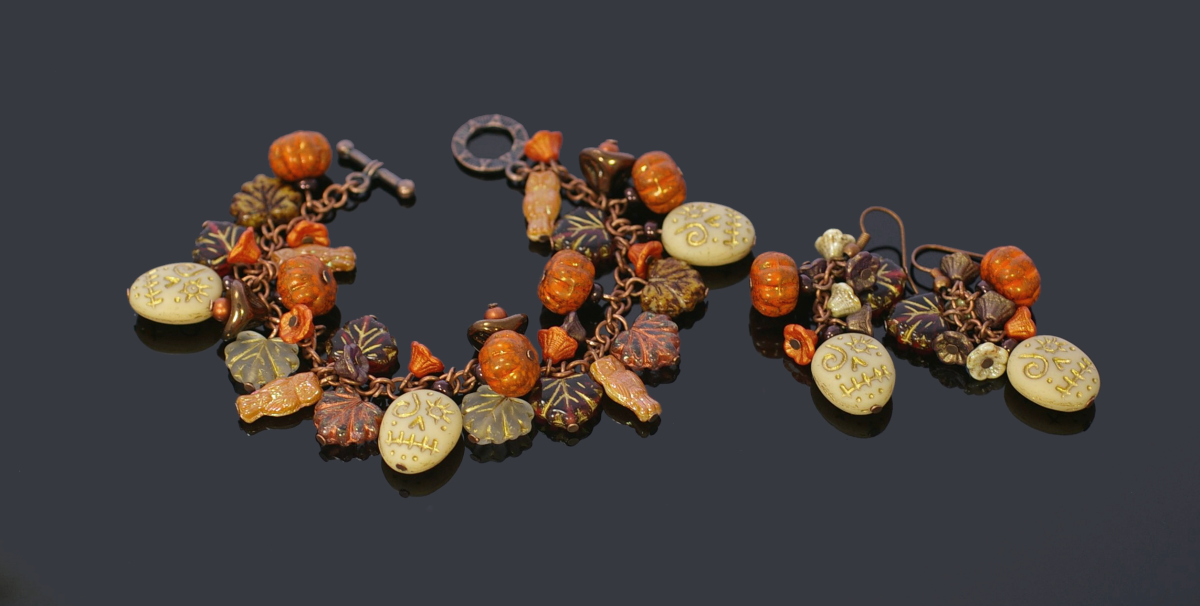 This is our first official collection under our brand name. It contains everything what belongs to the fall season from our bead assortment. Pumpkin beads are very typical as well as funny skull beads and of course leaf beads. As a nice supplements we got flower cup beads, rondelle beads and melon beads.