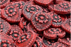 Lentil Beads with Ornaments 14mm
